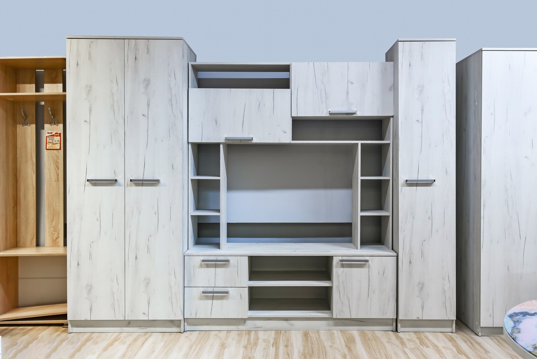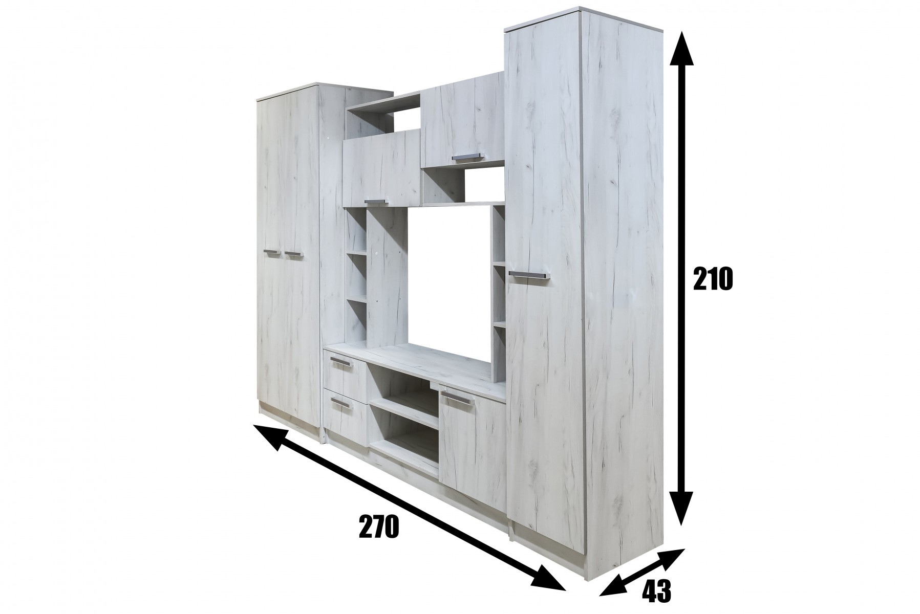 Каталог Корпусная мебель Гостиная Флора крафт белый Фото Купить Гостиная Флора крафт белый 28100 Задать вопрос Заказать по Telegram Размер 2,7*0,56*2,1 Размер под ТВ 1,0*0,8 Цвет дуб крафт —