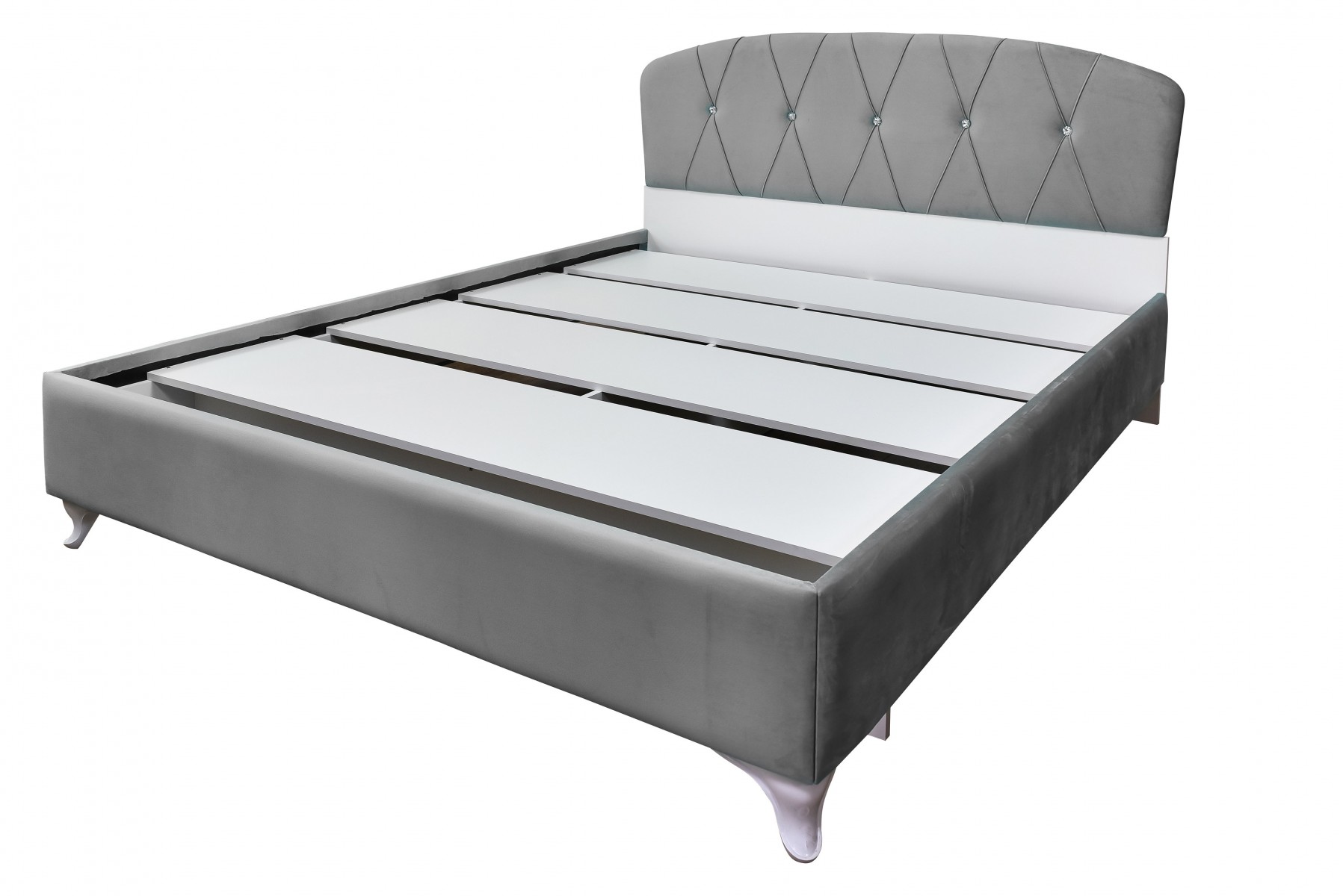 Мягкое изголовье является самостоятельным декором спальни, имеет плавные изогнутые переходы, украшено декоративными швами и стразами.