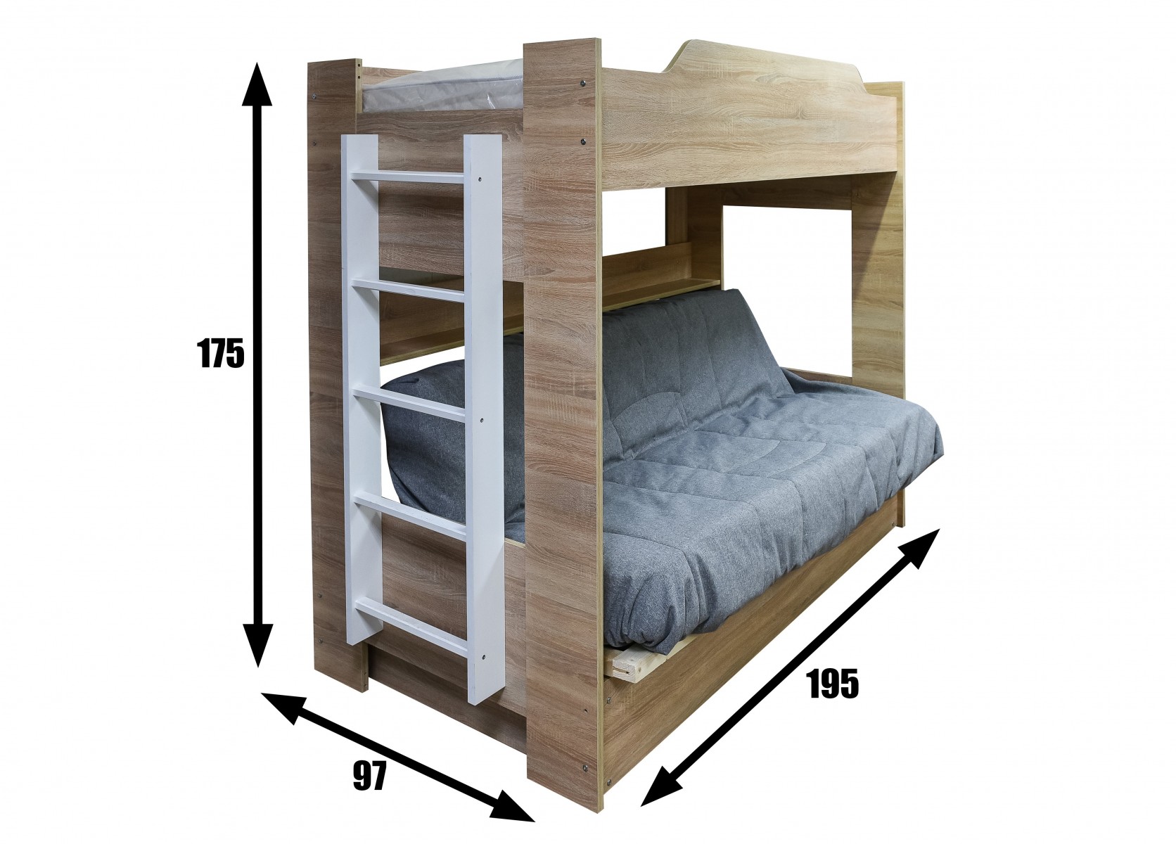 Верхняя койка 900х1900 мм с нагрузкой 50 килограммов. Матрас в комплект не входит, приобретается за отдельную стоимость.