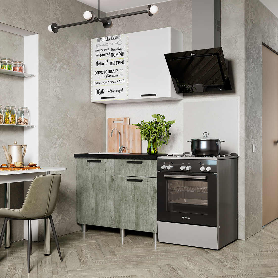 Каталог Кухонная мебель Кухня Ева Фото Купить Кухня Ева НОВИНКА 11950 Задать вопрос Заказать по Telegram Кухня Ева Размер: 1м. Цвет: бетон/белый —
