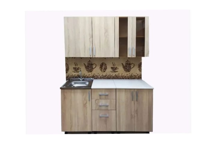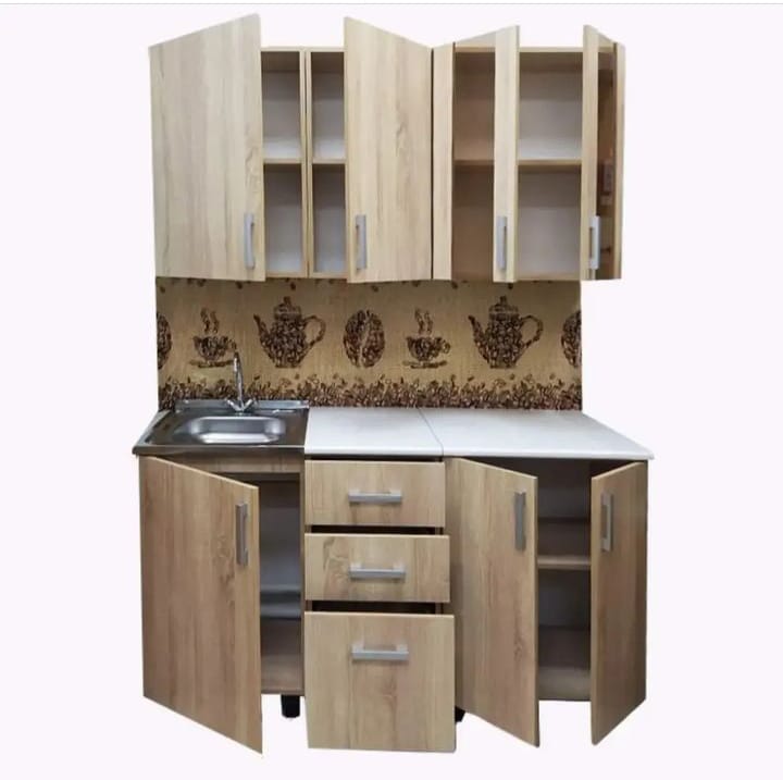 Кухня Трио- малогабаритная кухня, имеет простые формы и линии с умеренным количеством декора, выполнена в приятном глазу, спокойном цвете- сонома.