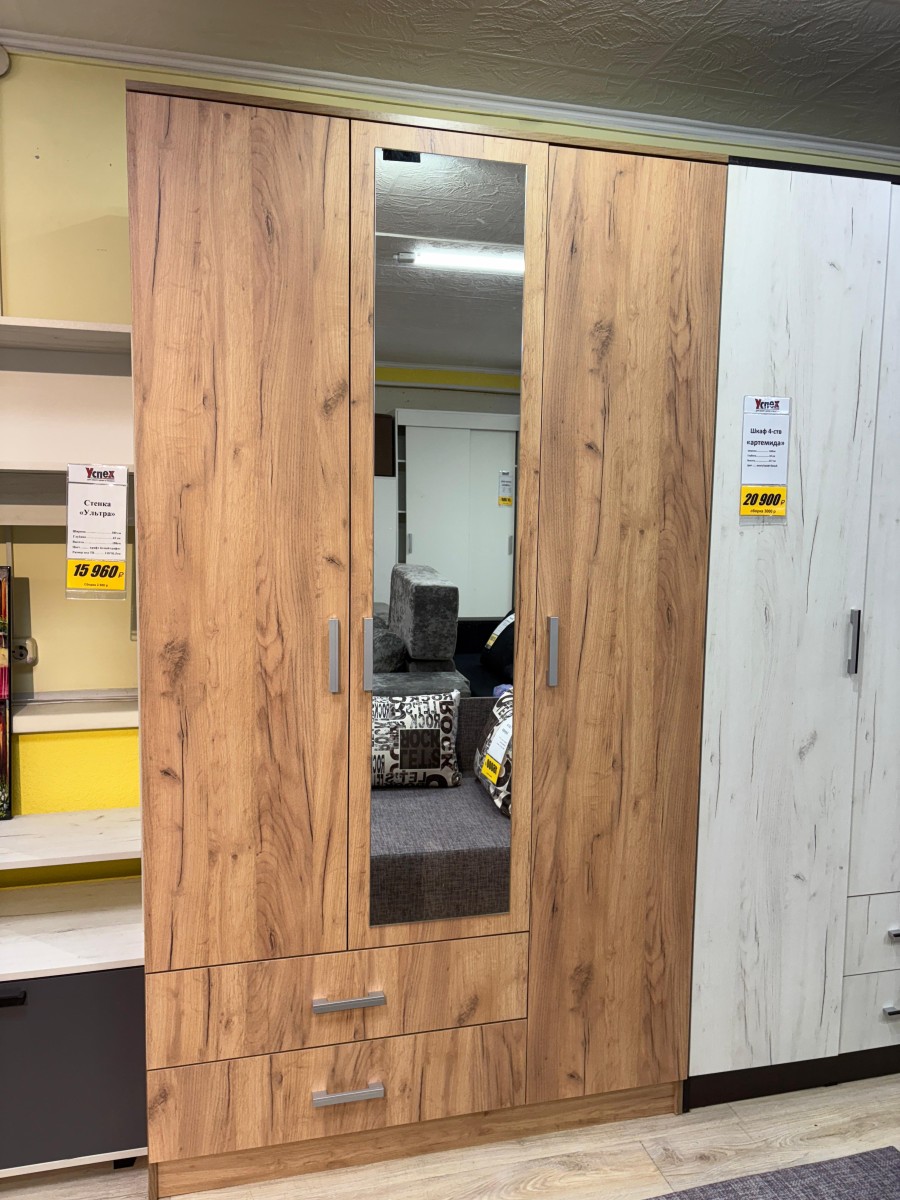 Каталог Корпусная мебель Шкаф 3-х ств с зеркалом Фото Купить Шкаф 3-х ств с зеркалом НОВИНКА 19450 Задать вопрос Заказать по Telegram Ширина - 120Глубина - 52Высота - 217Цвет: вотан/бельмунд —